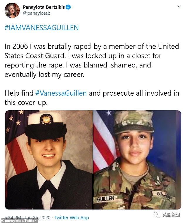 近日,一个名叫Vanessa Guillen的美国女兵的名字在推特、脸书等社交网络被频繁提起。Vanessa于今年4月22日被报告从驻扎的军营失踪,至今下落不明。