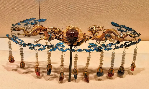 凤冠:古代皇帝后妃的冠饰,其上饰有凤凰样珠宝。明朝妇女出嫁时也可佩戴。明朝凤冠是皇后受册、谒庙、朝会时戴用的礼冠,其形制承宋之制而又加以发展和完善,因之更显雍容华贵之美。