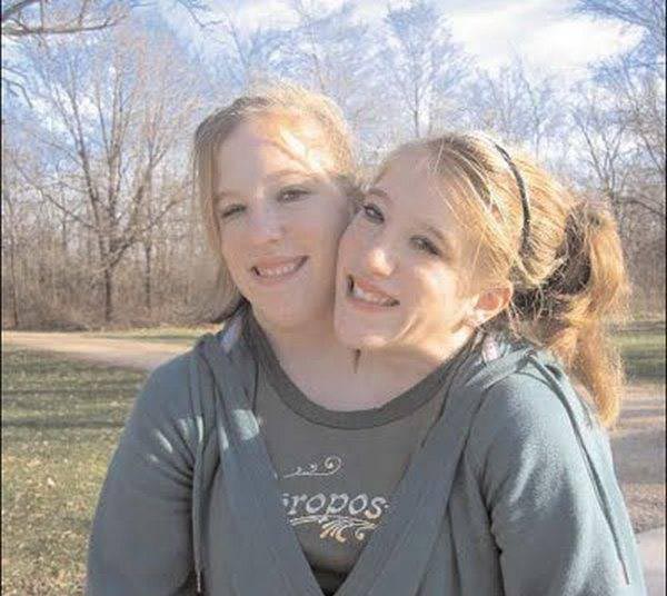 25岁的阿比盖尔(艾比)和布列塔尼,能够完全独立地控制自己的一半身体,即一条腿和一只手臂。他们是对称的连体双胞胎。每个人都拥有独立的心脏、胃、脊椎、肺和脊髓,但是他们共同享有膀胱、大小肠、肝脏、隔膜和生殖器官。