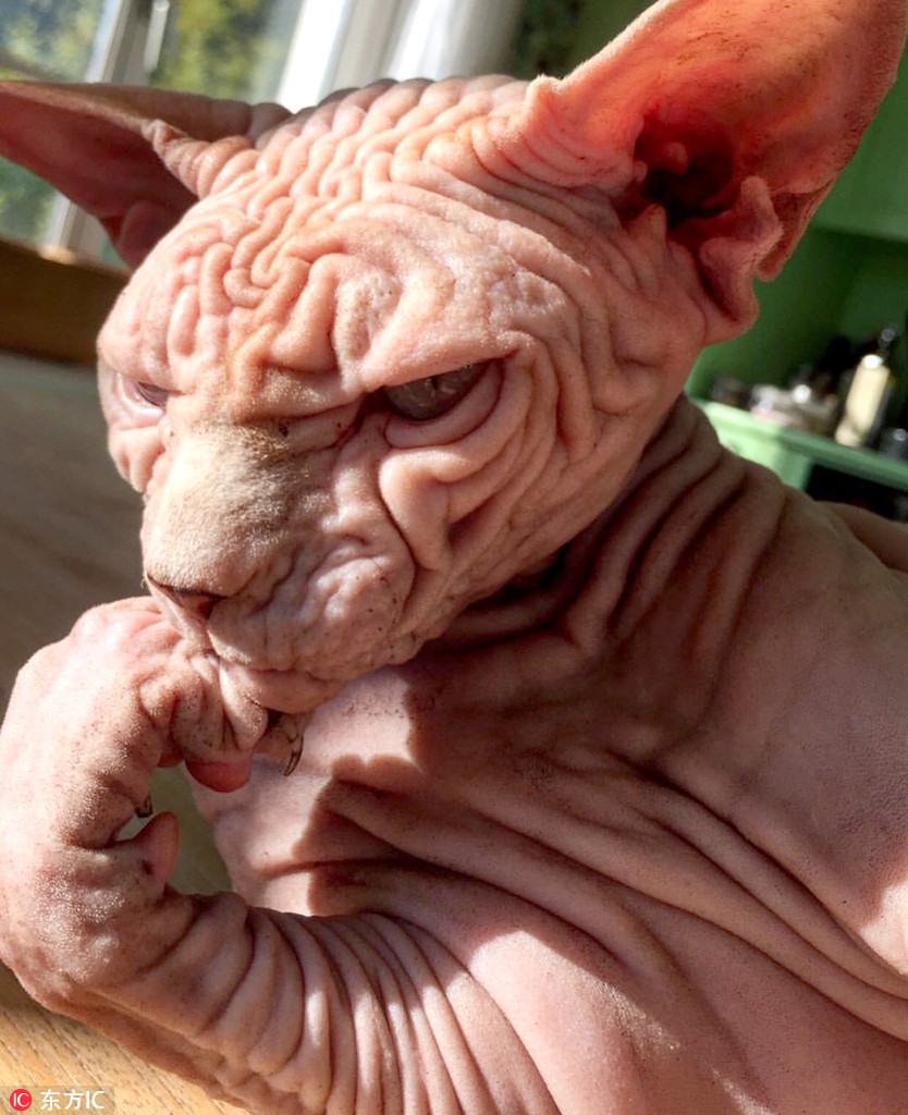 最近,动物界又多了一名网红,一只加拿大无毛猫Xherdan,它凭借一张不爽脸,成了动物网红界的新宠。
