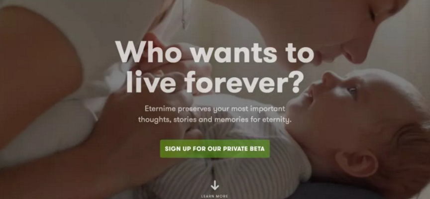 早在几年前,新型数字网站Eternime就打出了让你获得虚拟永生的口号,表示可以在你离开人世以后,用数字形式储存你的记忆和性格特征,并将这些数据输入到聊天机器人中,以便其他人可以与已经过去的人聊天。