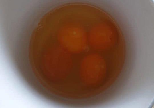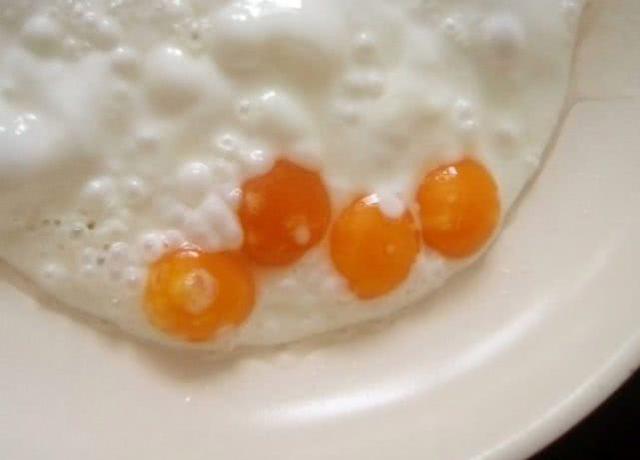 鸡蛋里有两个蛋黄(双黄蛋)可能不是什么稀奇的事,三个蛋黄就已经很少见了,但英国一位妇女在一枚鸡蛋里竟然发现了有四个蛋黄的鸡蛋。