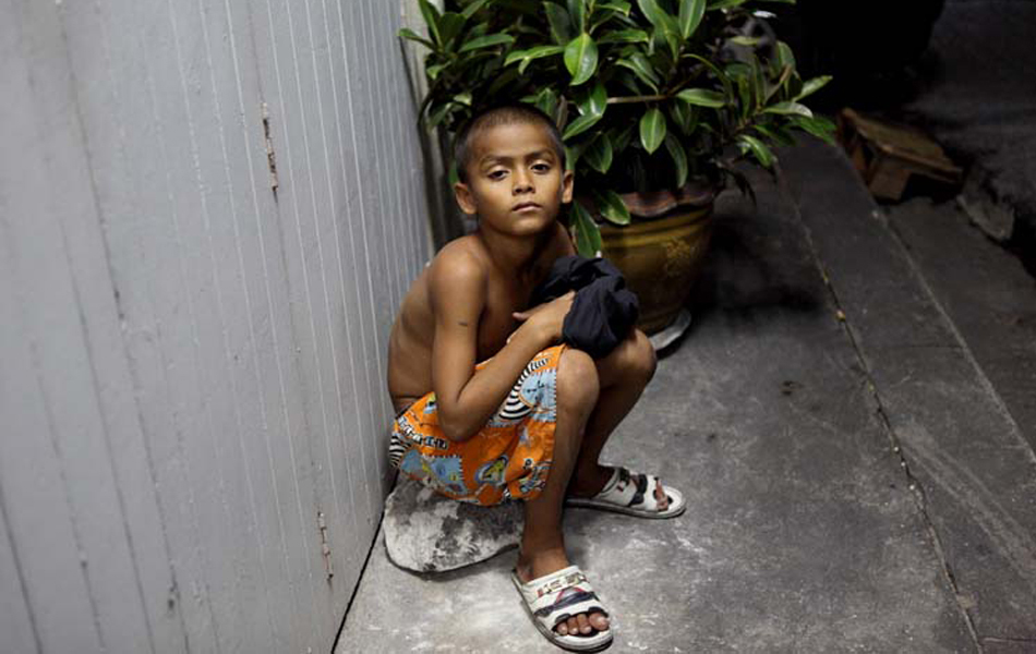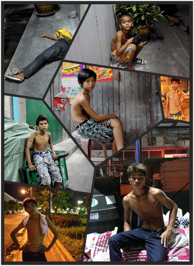 图:曼谷16岁男孩,家中有13个兄弟姐妹。从小就不知道生父是谁,母亲是街边小贩。他做童妓一个月,接客22人,他想以后当飞行员,可能他想飞得很高,离开当下糟糕的生活吧。
