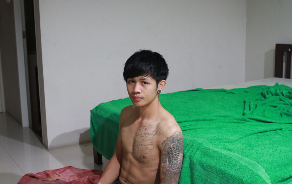 图:18岁男孩,家乡在吞武里府。家中三个兄弟姐妹全是性工作者。他做男妓5个月,接客40人,虽然他梦想是当一名军人,无业的父母却劝他做男妓赚钱养家,让人心寒不已。