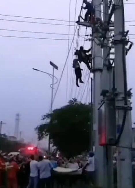 为掏鸟窝不惜玩命!爬电线杆掏鸟窝,安徽一男子不慎触电。