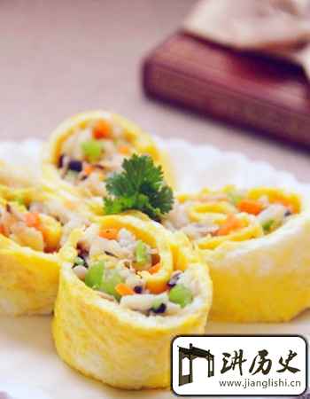 6、将吐司放在蛋皮中间,卷起包好即可。