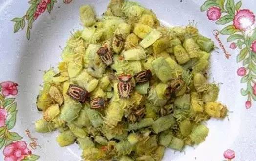 椿象(通俗的名字叫做放屁虫)南非特供,做熟了或者直接生吃 据说吃起来有苹果的味道,还有安神的作用。