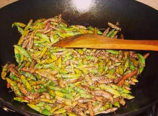 乌干达特产 就是长角蚂蚱啦!可炸可炒也可以晾干或水煮 据说配洋葱更是绝顶美味!