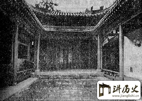 永州柳子庙戏楼背倚寺门,是三层楼阁式建筑。楼前有十三层台阶,上达大殿,形成自然看台。