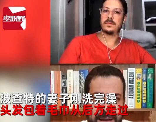 近日,巴西,据媒体报道,37岁电视主持人波查特与政治家布洛斯视频直播谈话时,波查特的妻子刚洗完澡、头发包着毛巾从后方走过,尽管她弯下腰试图不让镜头拍到,但最终还是入镜,甚至露出大片美背,让布洛斯当场笑喷并直说:有人光溜溜走过去了啦。波查特当场转头跟老婆说:大家都看到你了。没多久这段视频在网络疯传。