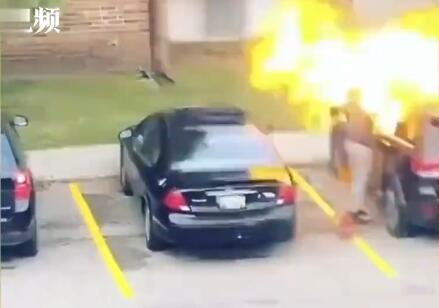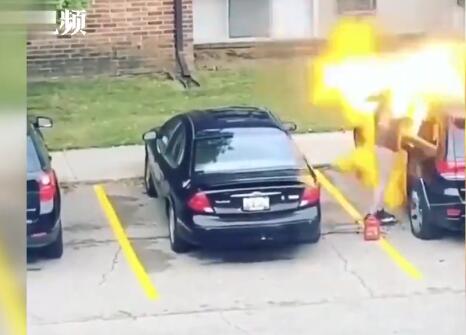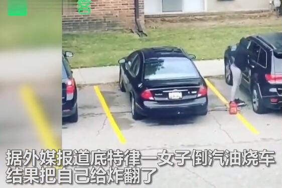 女子倒汽油烧前男友汽车 结果火苗蹿出炸翻自己不忍直视