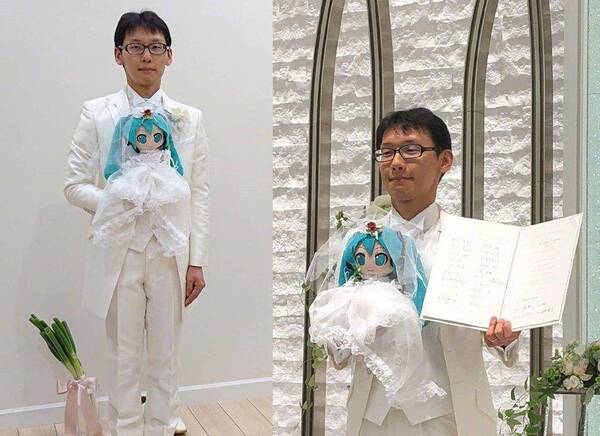 对于许多男动漫迷来说,「初音未来」可说是他们心目中唯一的女神,因此去年Gatebox 公司就曾推出与异次元角色结婚的企划,成功让3千多位民众与自己的心上人领结婚证书结成伴侣。其中一位35岁的日本宅男更为此于本月4日盛大举行婚礼,还进行宴客,所有婚礼该有的流程完全都没有少,令网友们相当钦佩他对初音的爱!