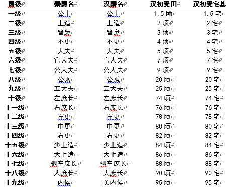 3.二十级所有的爵位和俸禄在军中,爵位高低不同,每顿吃的饭菜甚至都不一样。三级爵(簪袅)有精米一斗、酱半升、菜羹一盘。两级爵位“上造”的只能吃粗米,没有爵位的普通士兵能填饱肚子就不错了。