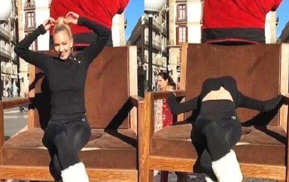 她先是坐在一个中间有洞的椅子上,然后突然后仰,头就钻进了椅子的洞内。(以上为柔术界的一位美女,她不仅风姿绰约而且肤白貌美,更是拥有一身真本事。她的表演曾让李冰冰花容失色;体操王子杨威曾表示艺术体操选手也不发达到她的柔软度)
