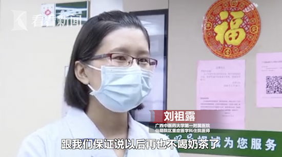 广西中医药大学第一附属医院仙葫院区重症医学科住院医师刘祖露表示:他昏迷了7天之后终于苏醒了,我们对他进行了葡萄糖耐量试验,明确了他是没有糖尿病的,也就是说他的情况,很可能是喝奶茶引起的,他现在也对奶茶深恶痛绝吧,跟我们保证说,以后再也不喝奶茶了。