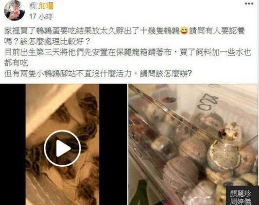 对于有民众担心日后吃蛋类是否杀生,谢咏丞表示,种鸡的蛋、蛋鸡的蛋是分流的,市场较大。而鹌鹑肉、鹌鹑蛋的市场较小,蛋比较无法分得清。一般来说,生蛋是笼饲,母鹌鹑住一笼,生下的鹌鹑蛋不是受精卵,而这位民众买回的鹌鹑蛋显然是受精卵,也许是有公鹌鹑混进母鹌鹑笼里播种,因此孵化出小鹌鹑。