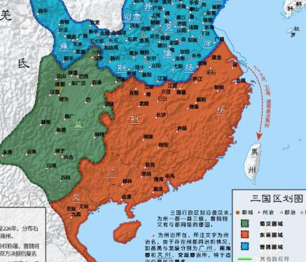 东汉末年天下十三州,曹魏占其9,人口66万户,450万人;蜀汉占其1,人口28万户,94万人;东吴占其3,人口52万户,230万人。