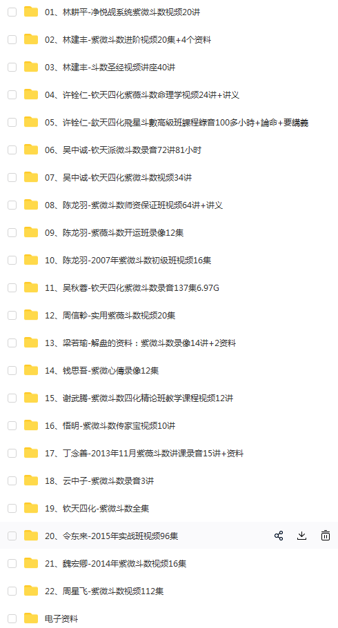 紫微斗数为皇家帝王之学、五大神数之首,本资源为160G紫微斗数神秘学课程合集,包含十几位紫薇名家口传教授的视频课程资料,让您0基础即可学习!