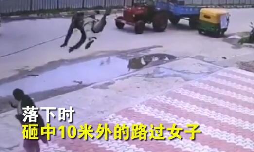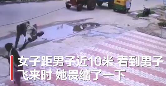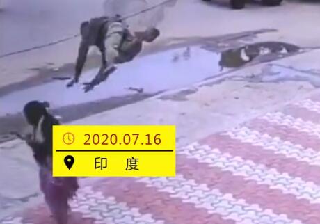 【飞来横祸!男子踩电线被弹飞砸中路过女子】据外媒7月30日报道,当地时间7月16日,印度一名男子踩到被过往车辆拖曳的电缆线上后被弹射到空中,落下时砸中10米外的路过女子,幸运的是两人只受轻伤。