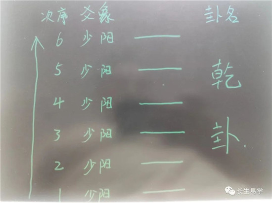 得出了上下(外内)两个三爻卦,都是乾卦,《周易》六十四卦中见到内外两个卦相同,就是本宫卦,就用原来的名称,可以称之为乾卦,也叫乾为天。
