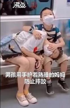 地铁里妈妈在儿子腿上睡着 小男孩现场一举动令网友动容