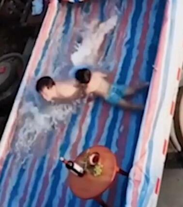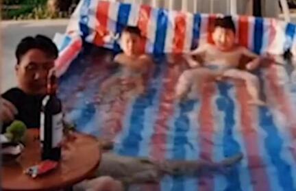 8月5日,江西抚州,一名爸爸为孩子用卡车DIY游泳池的视频在网络上走红。卡车上摆着小桌,还有水果和红酒。父亲称孩子喜欢去水库玩水,他又不放心,于是自己用卡车做了一个游泳池。