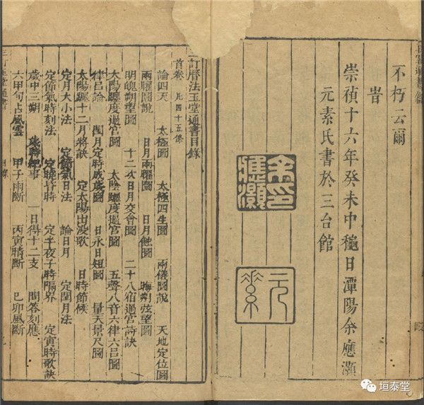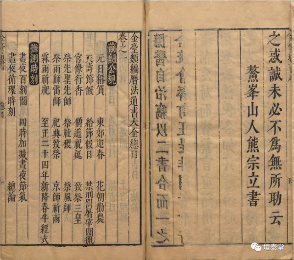 序言齐全。读序可知,熊宗立,是根据临江宋鲁珍辉山《通书》,及何士泰景祥《历法集成》二书合二为一而来。