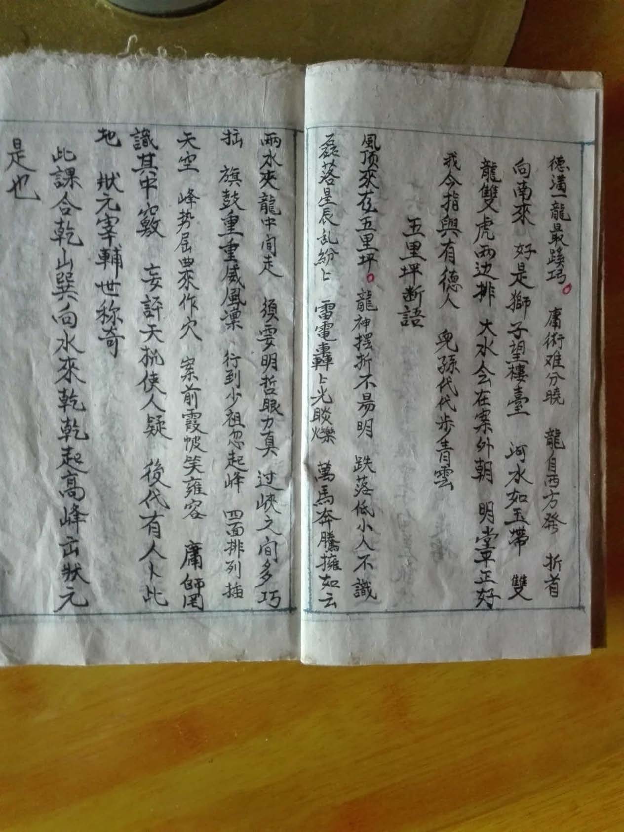 行至唐家凹,支龙结穴岔,一字文星面前排,向定将军发科甲,两水护龙节节长,木结之穴势高昂,有德扦塟此穴场,名登金榜朝庭上。