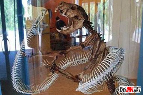 后来又发现了沃那比蛇缠绕恐龙的化石,这也是首次发现沃那比蛇吃恐龙的证据,化石完美的还原了沃那比蛇在吞吃恐龙的瞬间,和恐龙骨架等长的蛇形骨架缠绕在恐龙身上,虽然沃那比蛇的头骨有些细小,但是这并不能妨碍它的进食。
