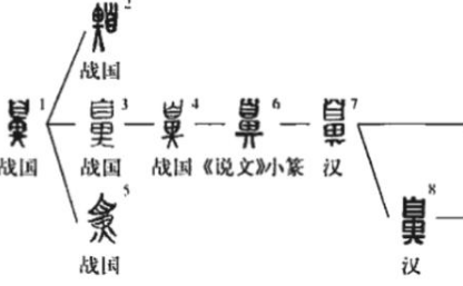 当然,观察商朝与战国的“鼻”字,两者依稀还是具有一定的联系,或许甲骨文中的“鼻”字已经流传了下来,但不太受到喜爱,基本不被使用,导致如今没有考古发现,于是“鼻”字演化链中出现了数百年的空白。