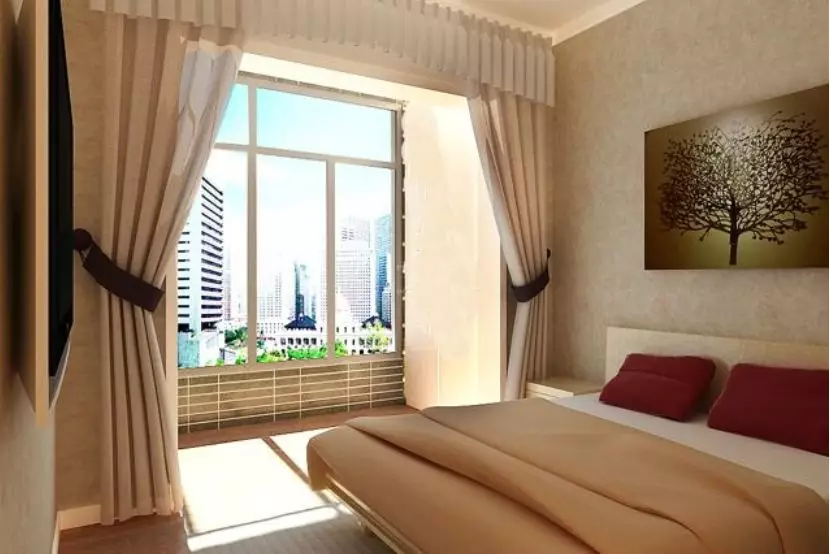 一般而言,主卧室的大小以床前的空间不超过一个床的长为最适宜。