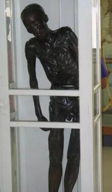 它被放在博物馆中尤为突出的显眼位置,眼窝被掏空,躯体上几个刽子手留下的弹孔触目惊心。