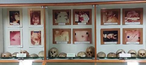 这所医院里的法医学博物馆陈列了各种干瘪而惊恐的干尸。