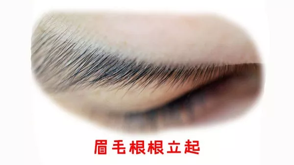 眉毛竖起,这种眉毛长势比较少见,即是眉毛不是贴着肉而生,而是一条一条竖起来,像刺猬的刺一样的。