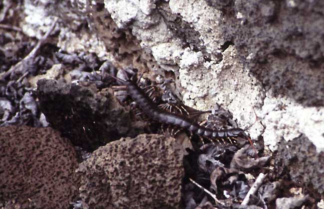加拉帕格斯巨人蜈蚣别称加拉,平均身长25~26厘米,最长的加拉帕戈斯巨人蜈蚣甚至能够长到30厘米以上,更有未确定报道曾经捕捉到62厘米的个体。加拉帕格斯巨人蜈蚣长相很类似于海南间脚蜈蚣,体色纯黑,超级粗壮,分布于加拉帕格斯群岛中的圣克鲁斯岛、厄瓜多尔沿海地区、秘鲁南部、库克群岛等地。