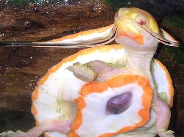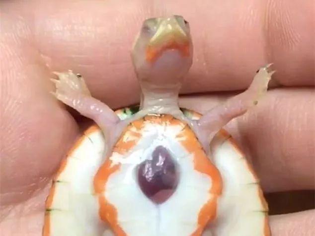 而这只小乌龟确切来说也是畸形动物的一种,因为它的心脏其实并不在龟壳内!
