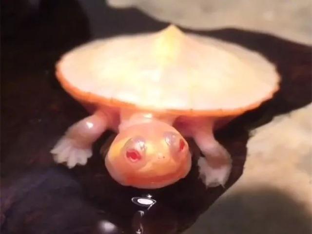 它是一只刚出生没多久的小龟,却是有着独特的白化病,大自然中有着白化病的白虎一族,有白狮子、白猎豹等等。