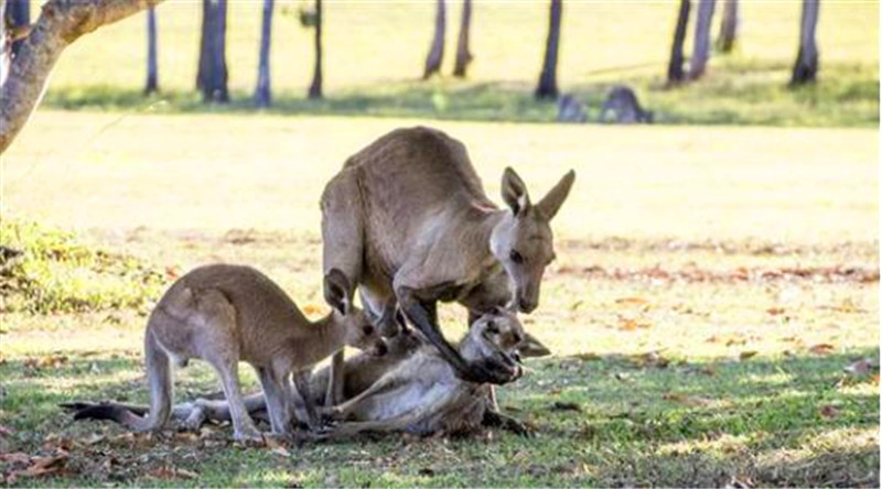 虽然袋鼠的攻击力很强,但在遇见肉食性动物袭击,它们的本能是逃跑。袋鼠妈妈只能牺牲掉其中一个孩子,来提高其他孩子的存活率,也许这是最佳抉择和无奈之举。为了在残酷的自然环境中生存下去,这就是大自然赋予动物们的本能。