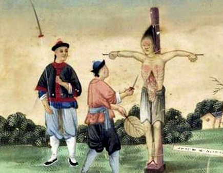 据史***载,刘瑾被凌迟的时候,第一天就被割了357刀,然后吃下了人生的最后一顿饭:两碗粥。第二天再次行刑的时候,刘瑾开始当众说出很多朝中的秘密,随即被刽子手堵住嘴巴。不久之后,活活疼死。在刘瑾死后,围观的百姓蜂拥而至,将刘瑾的肉抢走,告慰那些被刘瑾害死的人。这样的死法,显然是凄惨至极了。