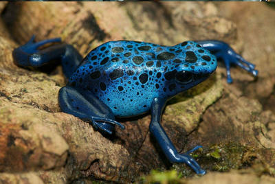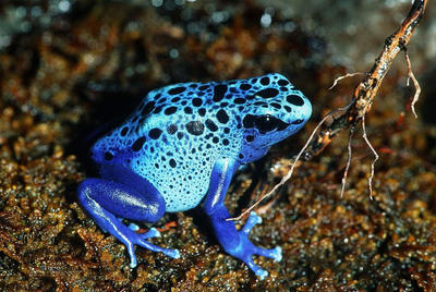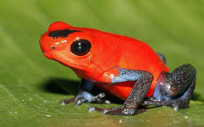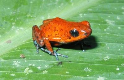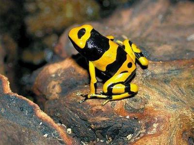 箭毒蛙是美洲最毒的生物之一,大部分都分布在南美的热带雨林之中,最常见的有幽灵箭毒蛙、钴蓝箭毒蛙还有黄金箭毒蛙。据说箭毒蛙中最毒的要数黄金箭毒蛙,要比一般的箭毒蛙毒性强上二十倍。一只黄金箭毒蛙中的毒性达到了2毫克,但只要0.2毫克的剂量就足以毒死一个成年人,2毫克可以毒死两万只老鼠了。