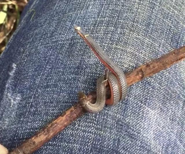 这条蛇让我想起了庄稼地里的蚯蚓,首尾都可以爬行,尽管如此也是可以区分首尾的,但是这条蛇完全区分不了哪边是头?哪边是尾?