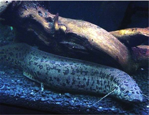美洲肺鱼。美洲肺鱼等迥然不同的体貌特征。非洲肺鱼的身体浑圆粗长,呈飘带状,既像特大号的泥鳅,又像小一号的龙鱼。