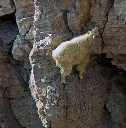 当然这种羊也会有其他的颜色的,不过这不是重点,重点是你看上图就就会发现。它们竟然可以攀爬在悬崖峭壁上,在我们的印象当中羊应该是一种比较笨拙的动物才对!