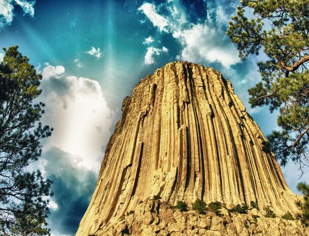 ▼美国怀俄明州-恶魔塔 虽然只有386米,不过由于陡峭的山壁,让登顶的可能性接近于0,但还是每年吸引了大量攀岩爱好者到此挑战。