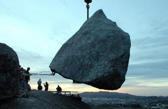 有一颗在山壁上的巨石,石头重达300吨,但数千来却一直不断地向下滑动,终于在1912年它掉下去了,让当地人震撼不已。经过95年他们用塑胶做了一颗假巨石放回原处,现在这颗石头重量只有9吨,被固定在岩石上!
