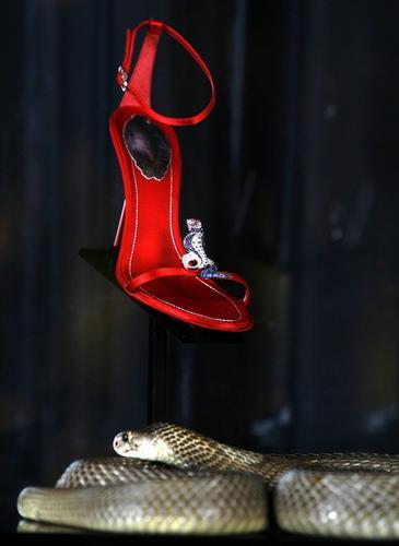 对于那些上流社会的富豪来说,能拥有一双意大利最著名的精品高级女式鞋是一件非常荣幸的事情,但是近日在英国伦敦举行的一个展览会上,人们则有幸目睹了剧毒眼镜蛇与天价凉鞋共舞的一幕。