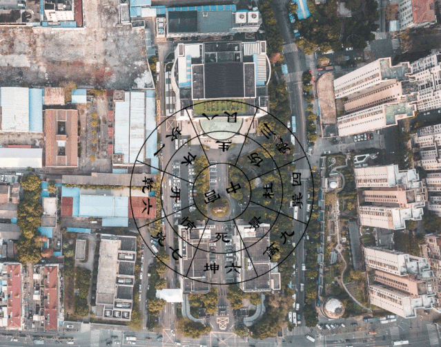 综合楼的外形,方中有圆,圆中又嵌方,正是表达出“天圆地方”的宇宙观,与天地感应,得天地护佑,天人合一。