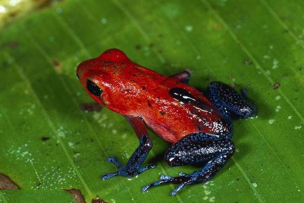 2、箭毒蛙:箭毒蛙是世界上外表最美丽的青蛙,同时也是毒性最强的物种之一,箭毒蛙体内的毒素可以杀死两万只老鼠。