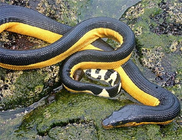6、贝尔彻海蛇:贝尔彻海蛇一度是全球毒性最强的蛇类之一,生活在澳大利亚西北部的阿什莫尔群岛的暗礁周围。在海洋中一般以小鱼为食,但受到打扰的时候,也会对惊扰者发起致命的攻击。