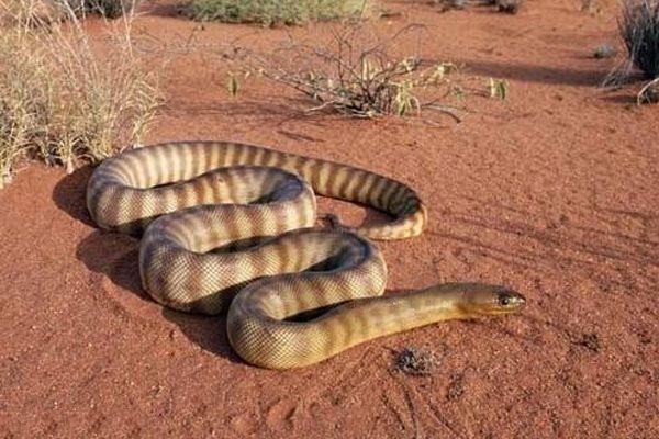 9、太攀蛇:太攀蛇是一种大型的太攀蛇属成员,亦为澳大利亚最大的毒蛇。太攀蛇是行动快速的哺乳动物杀手,日夜均会活动,毒性强烈,每咬一口释出的毒液已足够杀死100人。